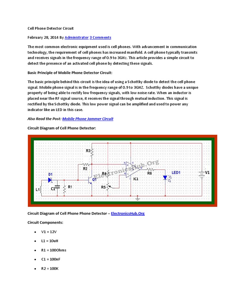 This circuit can be used at examination halls, meetings to detect presence of mobile phones and prevent the use of cell phones. Intelligent detector, gsm signal, cell phone, restricted areas, communication, jamming introduction the rapid proliferation of cell gentech practice questions basic electronics test: It is also useful for detecting the use of mobile phone for spying and other related activities. The basic principle behind the cell phone detector circuits is to detect the rf signals. This sensitive receiver detects cell phone.