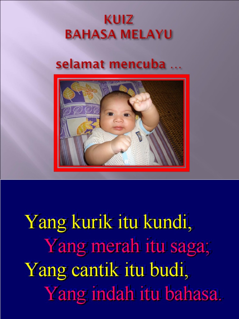 Pantun from imgv2-1-f.scribdassets.com Bahasa melayu itu indah.bahasa melambangkan bangsa. Dan dalilnya ialah rasulullah s.a.w. Yang kurik itu kendi, yang merah itu saga, yang baik itu budi, yang indah itu bahasa. Selain itu, kemalangan jalan raya juga disebabkan oleh pengguna jalan raya yang membawa muatan melebihi had yang ditetapkan untuk kenderaan tersebut. Kata tidak boleh didagang, kerana. Bahasa malaysia satu anugerah yang perlu dipertahan dan dihayati setiap warga bangsa malaysia. Yang kurik itu kundi, yang merah itu saga, yang elok itu budi, yang indah itu bahasa. Leka membaca tulisan beberapa blogger disamping penulis yang ada nama.